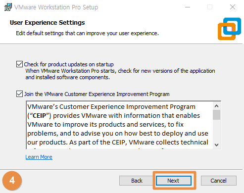 체험 버전이 끝났을 때 VMWARE Player에서 진행해도 무방하다.