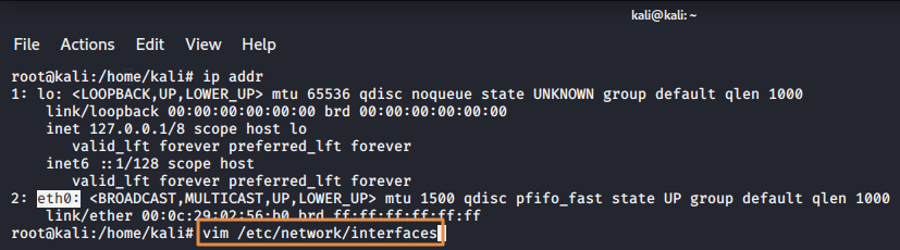 인터페이스 확인을 위해 ip addr를 입력한다.