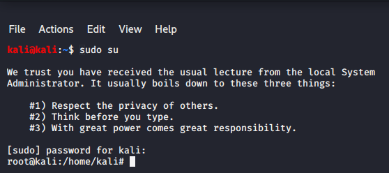 편의상 root로 실행하기 위해 sudo su를 입력한다.
