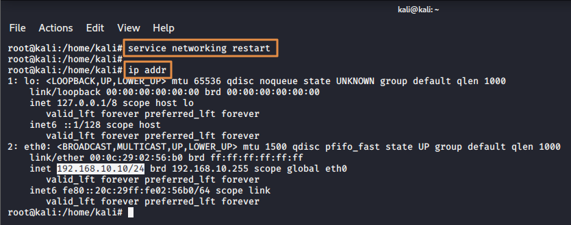 [그림 9]에서 입력한 IP를 정상적으로 할당하기 위해 다음과 같이 입력한다.
