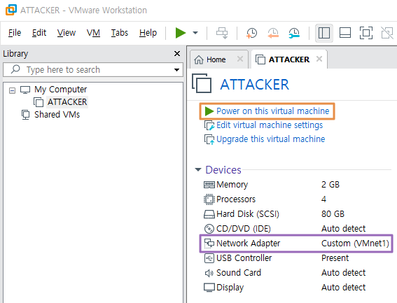 [그림 3]처럼 Network Adapter가 설정되었다면 Power on this virtual machine을 클릭한다.