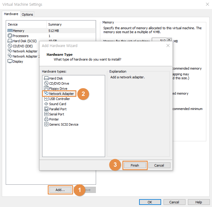 따라서 [그림 3]과 같이 Network Adapter를 하나를 추가한다.