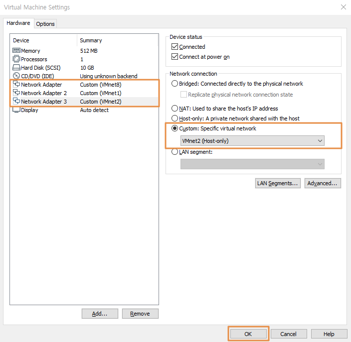 Internet과 연결을 위한 Network Adapter -> VMnet8